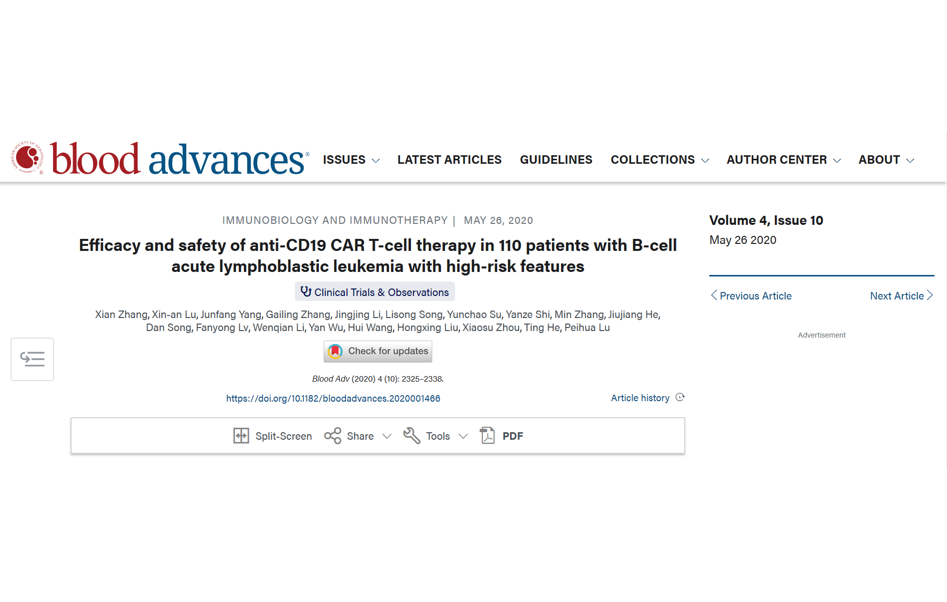 2020年5月26日,國際血液學期刊Blood Advances雜志發(fā)表了陸道培醫(yī)學團隊張弦主任為第一作者 【詳情】
