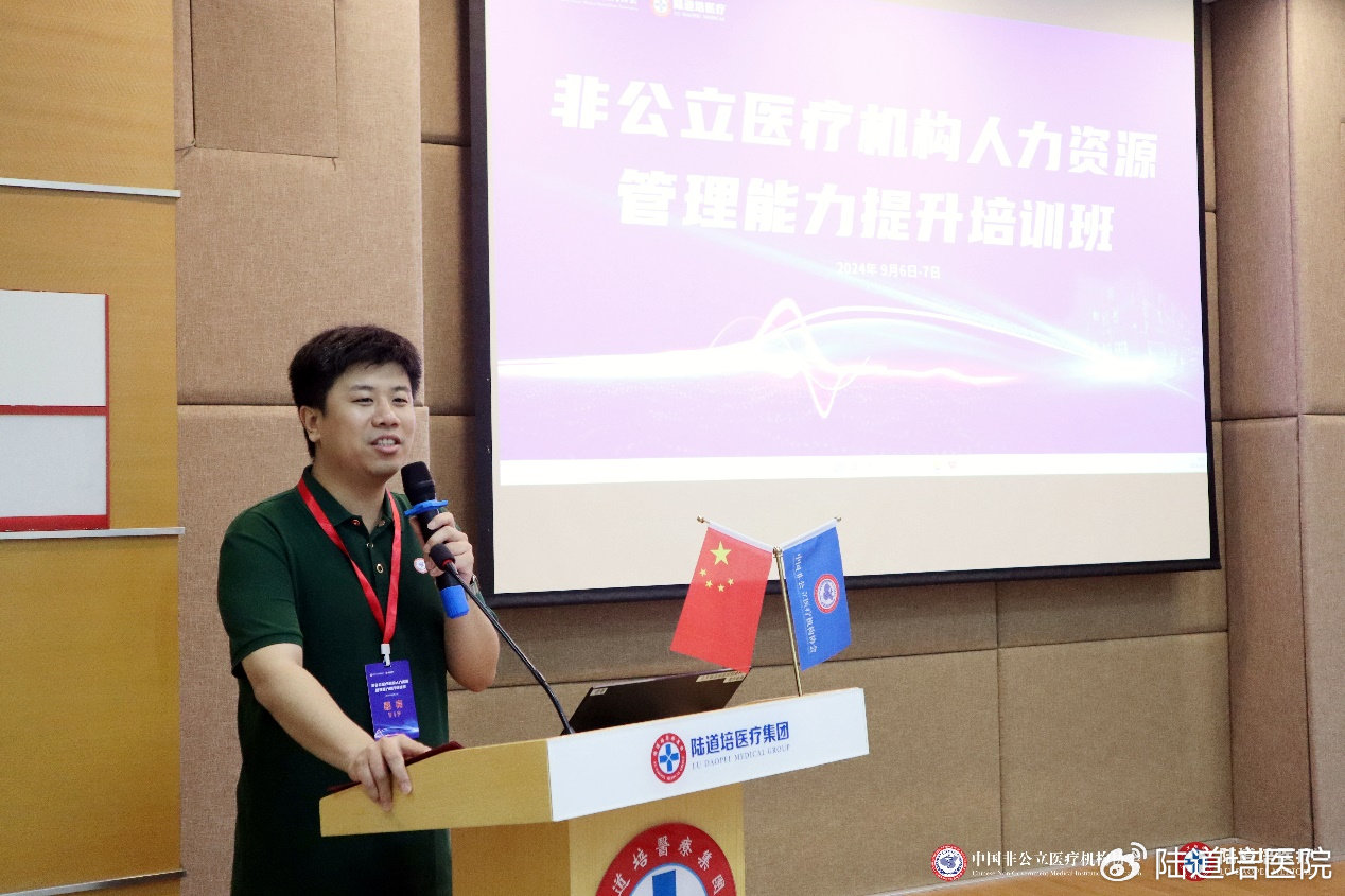 為加強(qiáng)行業(yè)人才鏈建設(shè),進(jìn)一步推動(dòng)我國非公立醫(yī)療機(jī)構(gòu)人力資源管理的專業(yè)化、精細(xì)化進(jìn)程,提升行業(yè)整體人才管理水平與招聘效率,構(gòu)建高效、穩(wěn)定、可持續(xù)發(fā)展的人才梯隊(duì),2024年9月6日-7日,由中國非公立醫(yī)療機(jī)構(gòu)協(xié)會主辦,陸道培醫(yī)療集團(tuán)承辦,丁香人才提供媒體支持的非公立醫(yī)療機(jī)構(gòu)人力資源管理能力提升培訓(xùn)班在北京陸道培醫(yī)院順利召開。北京陸道培醫(yī)院運(yùn)營執(zhí)行院長陸鳴岡、陸道培醫(yī)療集團(tuán)副總裁/運(yùn)營總監(jiān)趙奕參加會議并致辭。