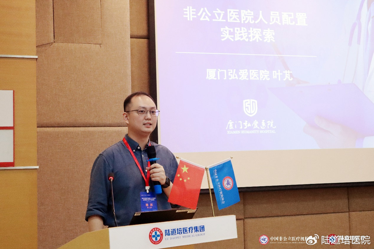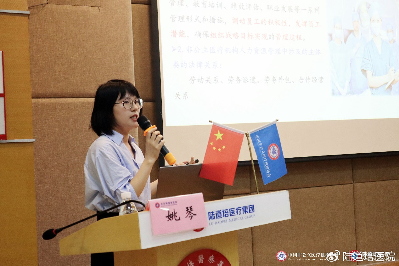 廈門弘愛醫(yī)院人力資源部經(jīng)理葉芃就《非公立醫(yī)院人員配置實(shí)踐探索》進(jìn)行授課。