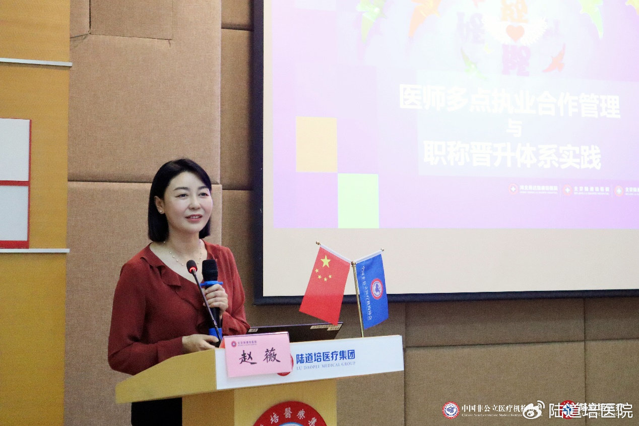 陸道培醫(yī)療集團(tuán)(三院區(qū))醫(yī)務(wù)部主任趙薇就《醫(yī)師多點(diǎn)執(zhí)業(yè)合作管理與職稱晉升體系實(shí)踐》進(jìn)行授課。